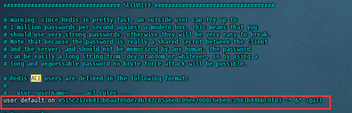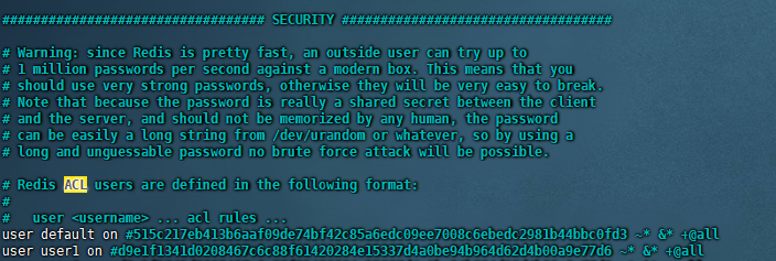 复制# Configuring Redis with users defined in redis.conf and at the same setting an ACL file path is invalid. This setup is very likely to lead to configuration errors and security holes, please define either an ACL file or declare users directly in your redis.conf, but not both.1.因此,需要注释掉原先的方式,云服务器只添加aclfile的配置。