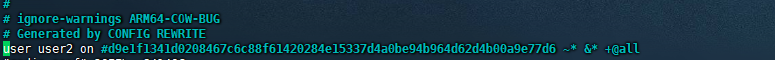 复制127.0.0.1:6479> ACL SETUSER user2 on >pwd_test1 allkeys +@all OK 127.0.0.1:6479> CONFIG REWRITE1.2.3.