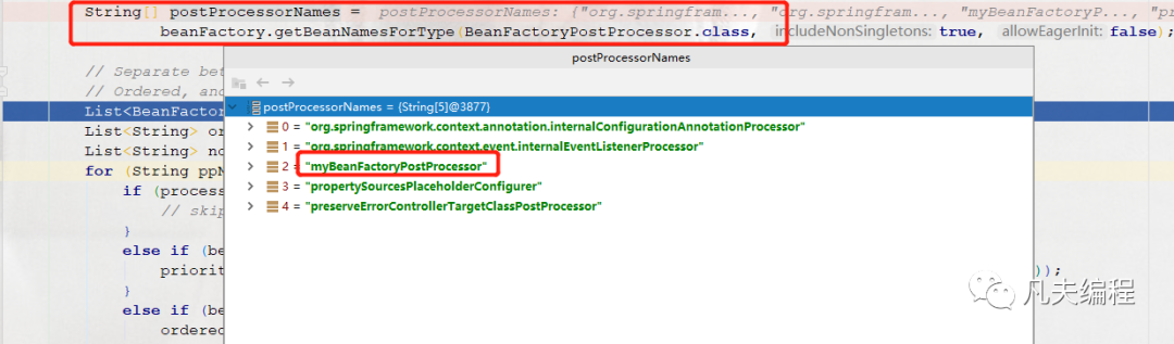 2、PostProcessorRegistrationDelegate#invokeBeanFactoryPostProcessors()方法被执行时,会按照类型从Spring容器中找到所有BeanFactoryPostProcessor类型的实现类的名称;