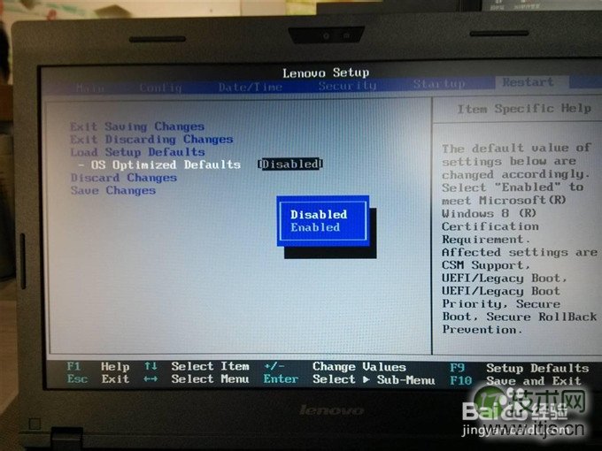 最后,大家要更改“Restart”里面的“OS Optimized Defaults”,系统默认设置是“Enable”大家要将其改为“Disabled”