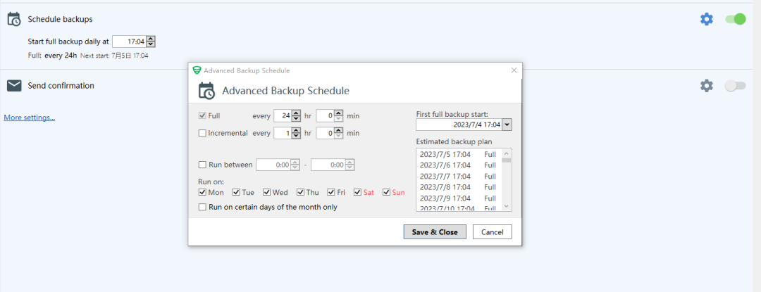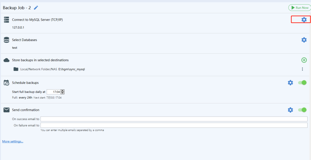 然后可以设置是否需要发送备份结果邮件,备份失败和备份成功可以分别设置不同的邮箱。