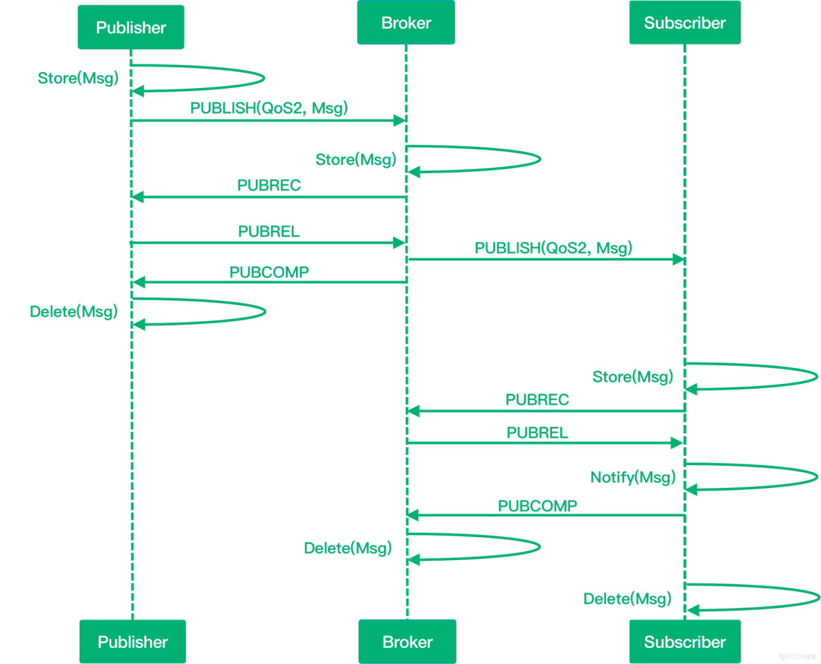 车联网场景中 QoS 2 的应用并不多,虽然其可以增加消息可靠性,但同时也使资源消耗和消息时延大幅增加。亿华云计算QoS 2 主要运用于对数据完整性与及时性要求较高的银行、消防、航空等行业,有些主机厂的行车告警和车辆充电桩计费费单消息会选择采用 QoS 2。