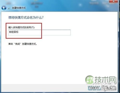 3、算机式何设置输入快捷方式名称,这个名称大家就自己写吧,什么好听写什么,对吧。比如说我起的名称是”锁定目标“,这时桌面就会出现一个“锁定目标”的快捷方式,如图