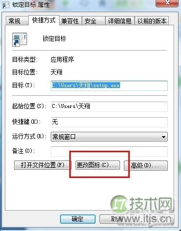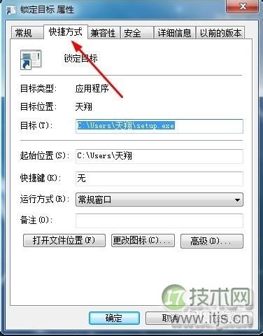 4、肯定会有小伙伴会说这个快捷方式太简陋了吧,图案都没有,大家不要急,小编这就教你们如何修改快捷方式图标。首先右键单击”锁定目标“的快捷方式,并在随后出现的快捷菜单上选择“属性”,选择“快捷方式”选项卡,如图