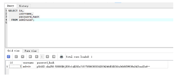 表已经创建成功,但是我们的 admin 用户还不存在,继续执行命令 AdminUser.init_user(),插入 Admin 用户。