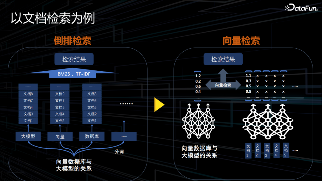 文本泛化能力、语义检索能力不足。基于切词结果,难以推广到图片视频等多模态场景。数据持续增长时性能不足。但是,现在有了深度学习,这产生了向量表示法,通过语言模型(如doc2vec、bert、LLM等),将文本转换为向量,从而将非结构化数据检索问题转化为向量近似检索问题。
