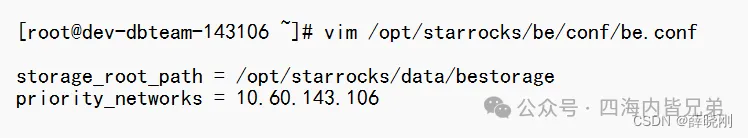 然后配置后台进程。BE (Backend)。这里需要把相应的路径写到配置文件中去。