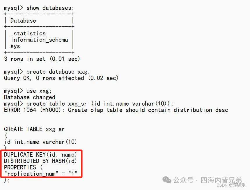 语法不一样。直接建表会出ERROR的1064错误。需要指定分片键等。关键的是由于是单机体验,要手写副本1.默认是3.目前不能再配置文件中修改。
