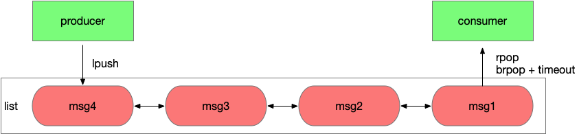 可能你会说那弄多个list,生产者向每个list中都投递消息,每个消费者处理自己的list不就行了吗。这样第一是性能不会太好,因为同一个消息需要被重复的投递,第二是这样的设计违反了生产者和消费者解耦的原则,这个设计下生产者需要知道下游有哪些消费者,如果业务发生变化,需要额外增加一个消费者,生产者的代码也需要修改。