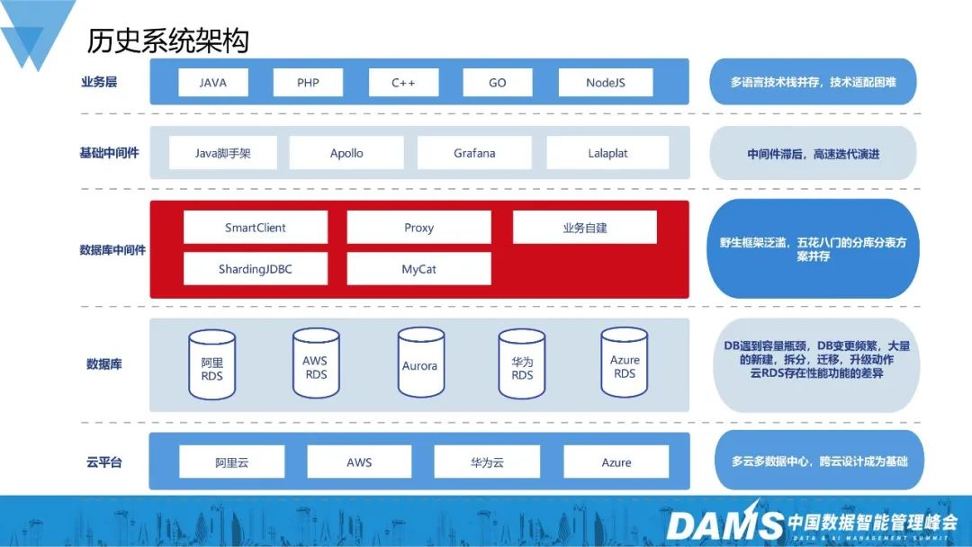 此外,我们的技术底层也在不断演进,新老服务也在不断交替。这就要求我们的数据层架构能够适应多语言异构的环境,同时具备高度的可扩展性和可维护性。