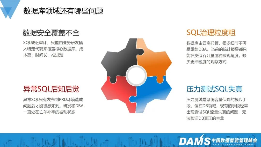 最后是压测SQL流量失真问题:压力测试是保障系统容量的核心手段,但在DB领域,我们经常因为测试SQL和线上真实运行的SQL存在差异,而无法有效验证出数据库的真实容量,存在容量风险和资源浪费的双重问题。