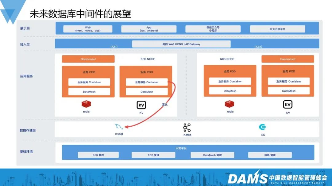 未来我们期望把DBProxy、KafkaGateway这样的数据层中间件都转型到sidecar模式,和现有的RedisMesh集成,打造新一代的数据层中间件DataMesh。