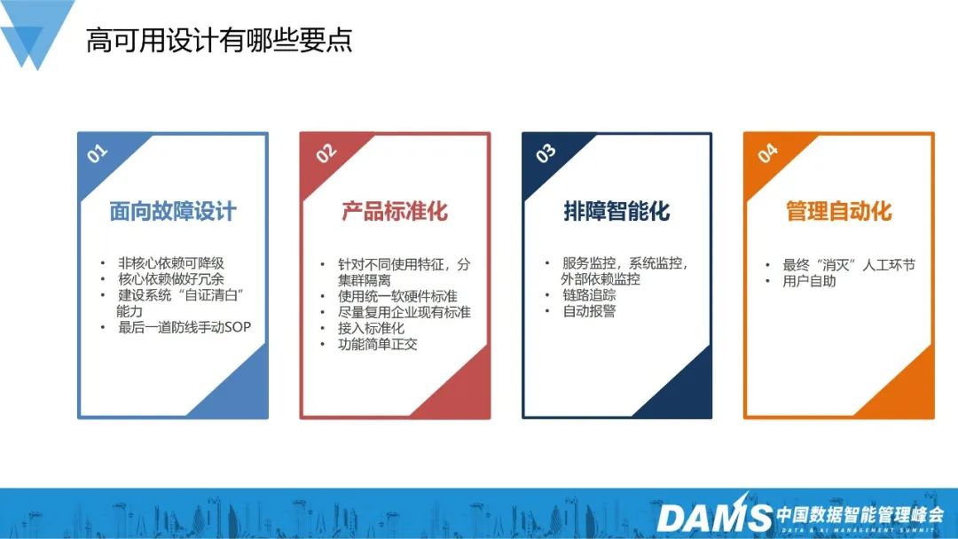 平滑升级,连接预热,快启动,慢退出,连接平滑释放等细节来达成变更平滑、管理平滑、运维平滑;监控报警,是一个系统长期稳定的关键之一。在越早的阶段发现问题,问题的影响就越小,而监控报警是发现识别问题的关键。监控报警既要全面,又要准确,必须有一个持续收敛保鲜的过程才能保证它的有效。3)高可用设计(体现在方方面面):