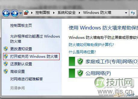 1.依次点击:开始→控制面板→系统和安全→Windows防火墙。不能步骤