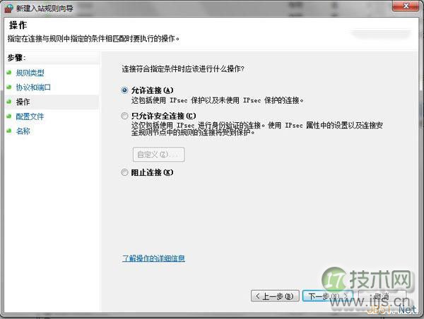 操作:选中允许连接点下一步;