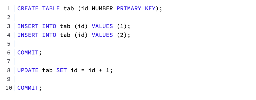 在 Oracle 中,任何 DML[2] 语句会隐式启动一个数据库事务,除非已经有一个事务处于开启状态。您必须显式地使用 COMMIT 或 ROLLBACK 来结束这些事务。没有特定的语句来启动一个事务。