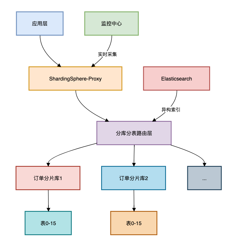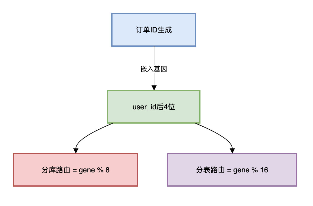 复制// 分库分表路由引擎 publicclass OrderShardingRouter { // 分8个库 每个库16张表 privatestaticfinalint DB_COUNT = 8; privatestaticfinalint TABLE_COUNT_PER_DB = 16; public static String route(long orderId) { int gene = OrderIdGenerator.getShardKey(orderId); int dbIndex = gene % DB_COUNT; int tableIndex = gene % TABLE_COUNT_PER_DB; return"order_db_" + dbIndex + ".orders_" + tableIndex; } }1.2.3.4.5.6.7.8.9.10.11.12.13.14.关键突破:通过基因嵌入,使相同用户的做分订单始终落在同一分片,同时支持通过订单ID直接定位分片