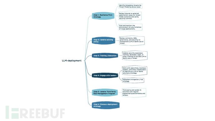 制定LLM战略时,清单企业需重点应对生成式AI带来的布生独特风险,通过组织治理和安全控制加以缓解。成式OWASP建议采用六步法构建有效的安全LLM部署策略: