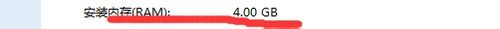 6、舰版然后查看安装内存(RAM),系统就可以看到我们自己电脑的安装内存是4G的