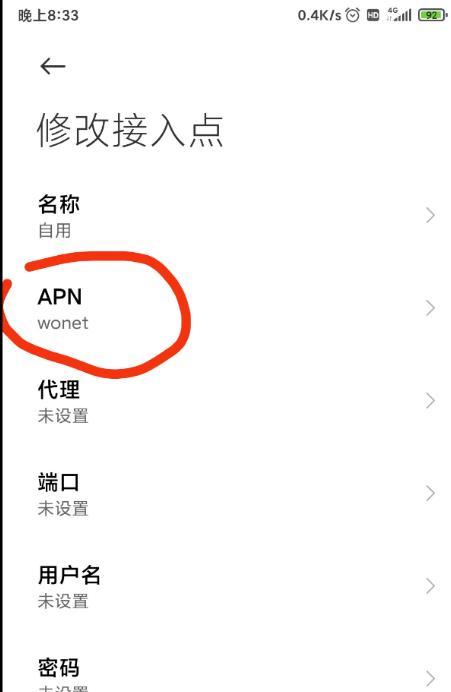 4.在手机设置中找到APN设置页面,并填写正确的接入点信息