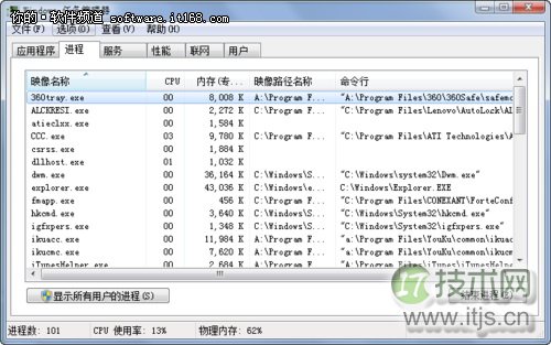 以后进入任务管理器下的任务功能表中,看到的就是详细的使用情况,以及程序的具体路径了。