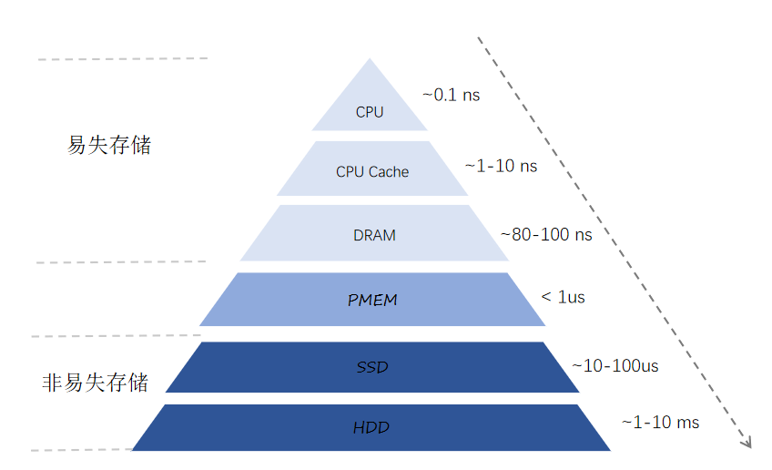 Persistent Memory在过去几十年间,计算机系统已经实现了如下金字塔型存储结构。