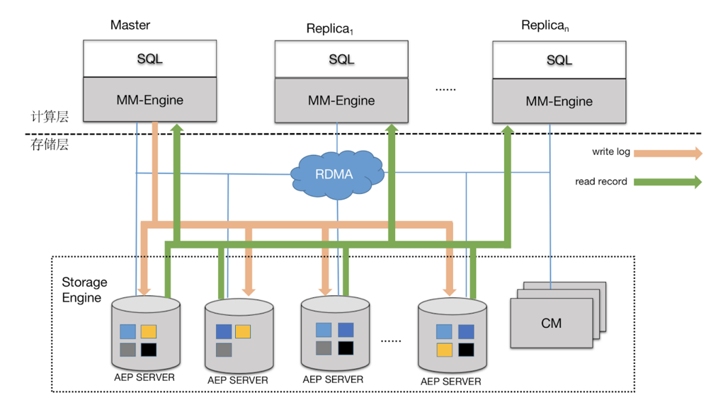基于 AEP + RDMA 硬件,数据库团队设计了分布式、高性能存储系统——A-Store。A-Store 对外提供的语义是 Append-only 写接口和随机读,支持 RDMA 单双边的消息。