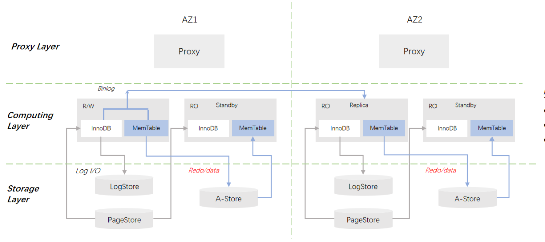 DB-Cache 层:这一层会存储两类数据,一类是日志流,另一类是用户数据的缓存。我们在这一层引入一些新的硬件进行加速,为用户提供极致的性能体验。