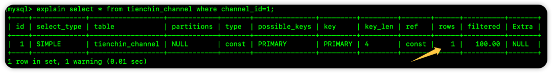 当我们想要查看一条 SQL 的执行计划时,这个执行计划中会展示出来这个 SQL 执行过程中大概会扫描多少行数据,如下: