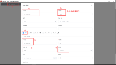 单击“确定”按钮,然后新建一个连接,填写Redis数据库信息,连接Redis数据库。