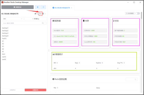 接下来以Another Redis Desktop Manager为例,演示使用图形化工具管理Redis数据库。