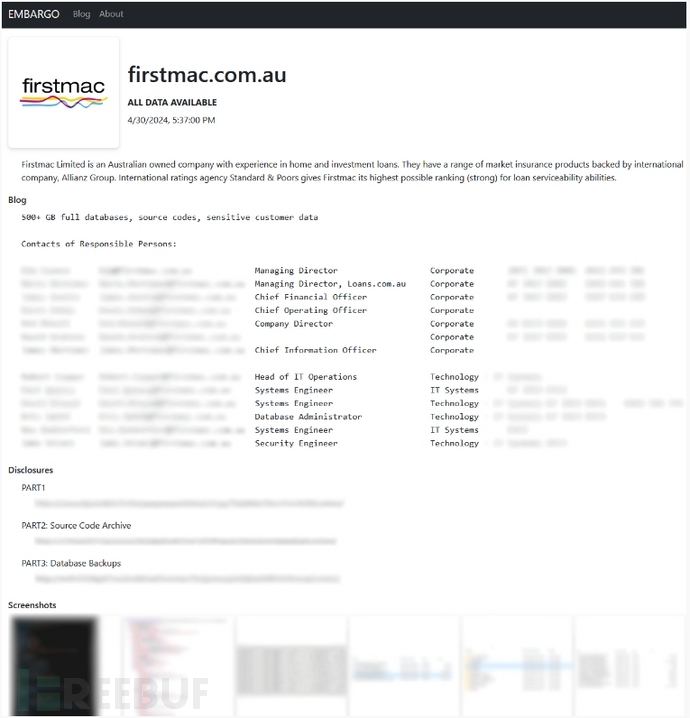 据澳大利亚新闻媒体报道,这一数据泄露事件发生在2024年4月,Embargo勒索软件组织在其数据泄露网站上宣布了这一消息。