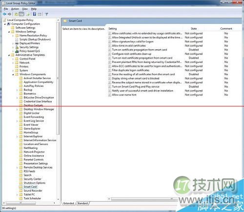 2、香港云服务器闭智在本地组策略编译器中选择 计算机配置 管理模块 windows组件 智能卡.