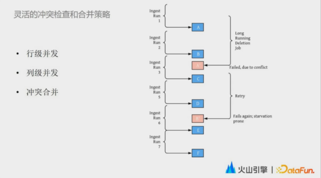 通过在Flink的 embedding term server上支持对当前进行中的事务元信息进行缓存,大幅提升单个任务能够并发写入的文件量级。提供更灵活的冲突检查和数据合并策略——行级并发、IT技术网列级并发和冲突合并。