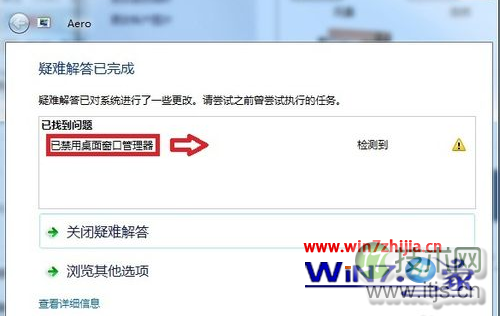 3、一番搜索检测之后,证实是透明效果的 Aero 未开启。