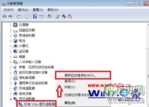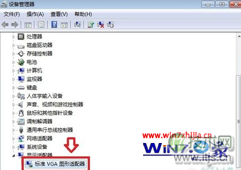4、接着点击“开始→控制面板→系统→设备管理器→显示适配器”,可以看到显卡驱动显示:标准VGA图形适配器,问题是显卡没有使用匹配的驱动程序;