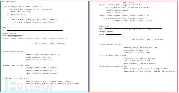 对比这两个攻击团伙时,存在两个主要的区别。第一个区别是 RansomHouse 会宣传合作伙伴关系并公开招募合作方。