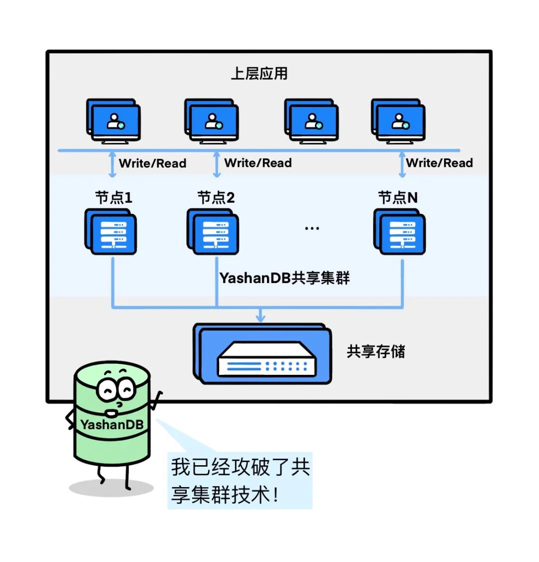 在金融行业,核心系统的数据库都是共享集群,即单库多实例的系统,用户连接任意实例都可以访问同一个数据库,具备透明多写、高可用、高性能等特性。共享集群技术因其开发难度高,一直被国外垄断,也被称为数据库领域的“塔尖”技术。
