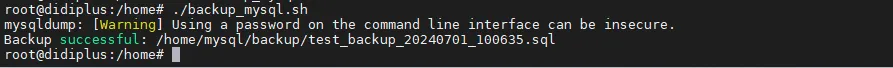 复制./backup_mysql.sh1.如果配置正确,云服务器提供商脚本将生成一个备份文件,并显示备份成功的消息。如下图: