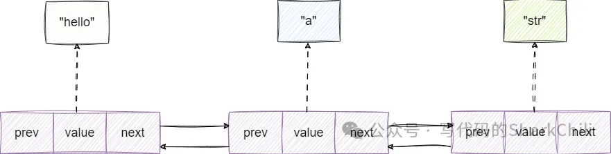 redis中双向链表的硬核节点都是由如下3个元素构成: