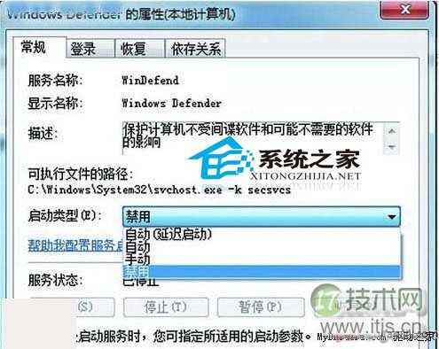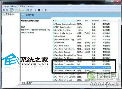 在键盘上同时按下“WIN”和“R”键,在弹出的对话框里输入 “Services.msc”,点击确定后我们就能看到一个界面。Windows 7的各种系统服务程序都集中在这里,我们可以选择对其关闭或者打开。在这里面找到 “Windows Defender”,双击后会弹出一个对话框,点击“启动类型”,在下拉菜单里选择“禁用”,整个系统服务就被停止了。Windows Search和Volume Shadow Copy的禁用方法与此类似。