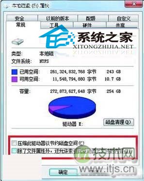 其中文件压缩的目的是为了节约磁盘空间,但实际上这个功能并不能节约出多大的硬盘空间,几乎没有什么实际效果。而文件索引的目的是让用户能够更快地找到硬盘上的文件,这个功能本来很好,但Windows 7会经常在空闲时检查索引,造成大量的硬盘读写操作,对于使用了4G内存补丁的Windows 7系统来说所造成的读写量就更大了,所以,我们有必要取消文件压缩和索引功能,尽量减小硬盘的压力。