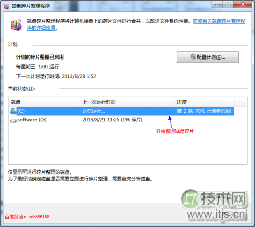 5、磁盘分析完,就可以进行磁盘碎片整理了,一般碎片10%以下可以不进行整理,我这里为了描述碎片整理的全过程,所以进行整理。