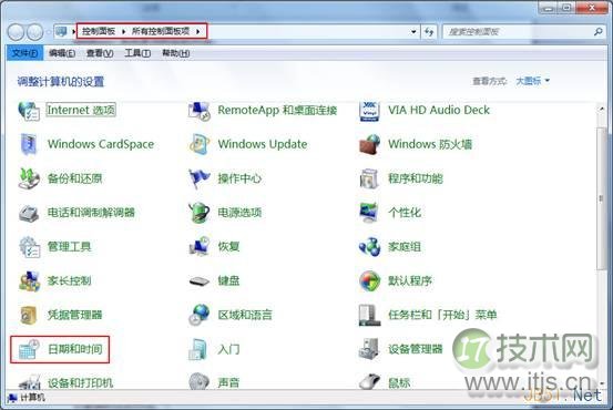 除了这个方法还有一个方法也可以设置时区,我们打开控制面板,在控制面板中找到“日期和时间”并且点击,随后的操作就和上面第三步开始一样了。