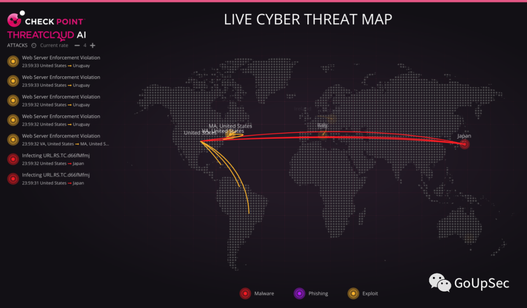 地址:https://threatmap.checkpoint.com/
