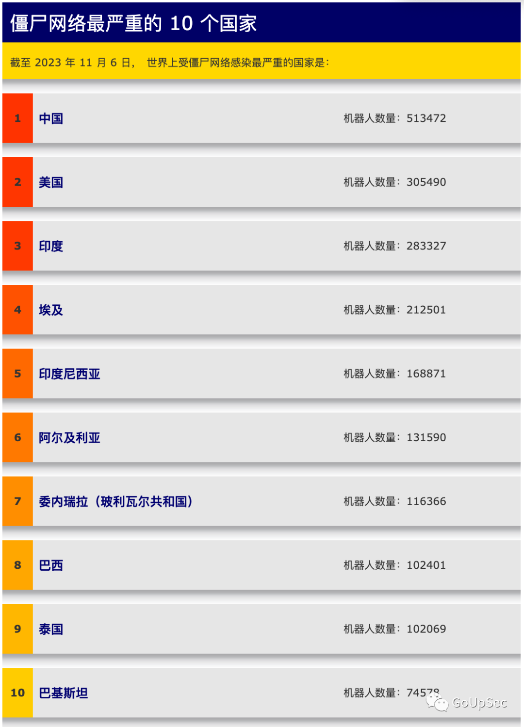 Spamhaus僵尸网络榜单是一个实时的僵尸网络国家排行榜,排名基于SpamhausXBL(Exploits Block List)数据库中检测到的活跃僵尸网络的垃圾邮件发送数量。这些僵尸网络不仅可以用于发送垃圾邮件,还可以进行网络钓鱼、点击欺诈、分布式拒绝服务(DDoS)攻击和其他恶意活动。