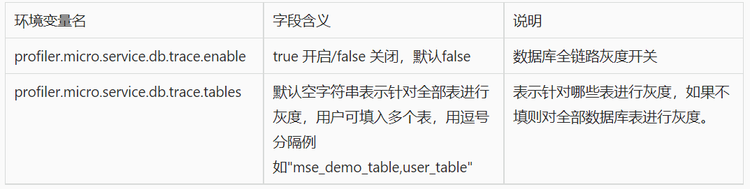 我们需要配置以下环境变量来额外开启/配置数据库的全链路灰度能力