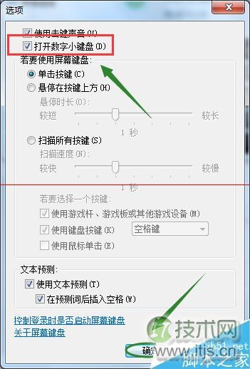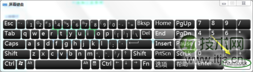 5、这个时候将该项点击勾选,然后确定退出,此时虚拟键盘右下角的NumLock键亮起,这个时候一般问题都可以解决,当然键盘硬件坏了的WordPress模板情况例外