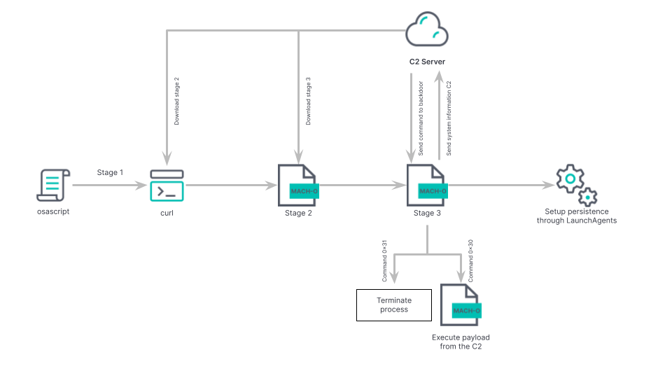 研究人员指出,苹果黑客为了持续收集用户信息,会将此木马加入名为 LaunchAgents 的开机自启文件夹中,且不断调整自身各项配置来回避杀毒软件的服务器托管检测。