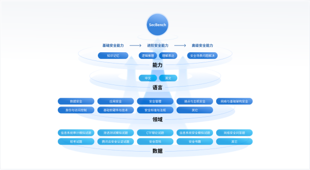 SecBench网络安全大模型评测平台,将重点从能力、语言、领域、安全证书考试四个维度对大模型在网络安全领域的各方面能力进行评估,为大模型研发人员、学术研究者提供高效、公正的基座模型选型工具和研究参考。